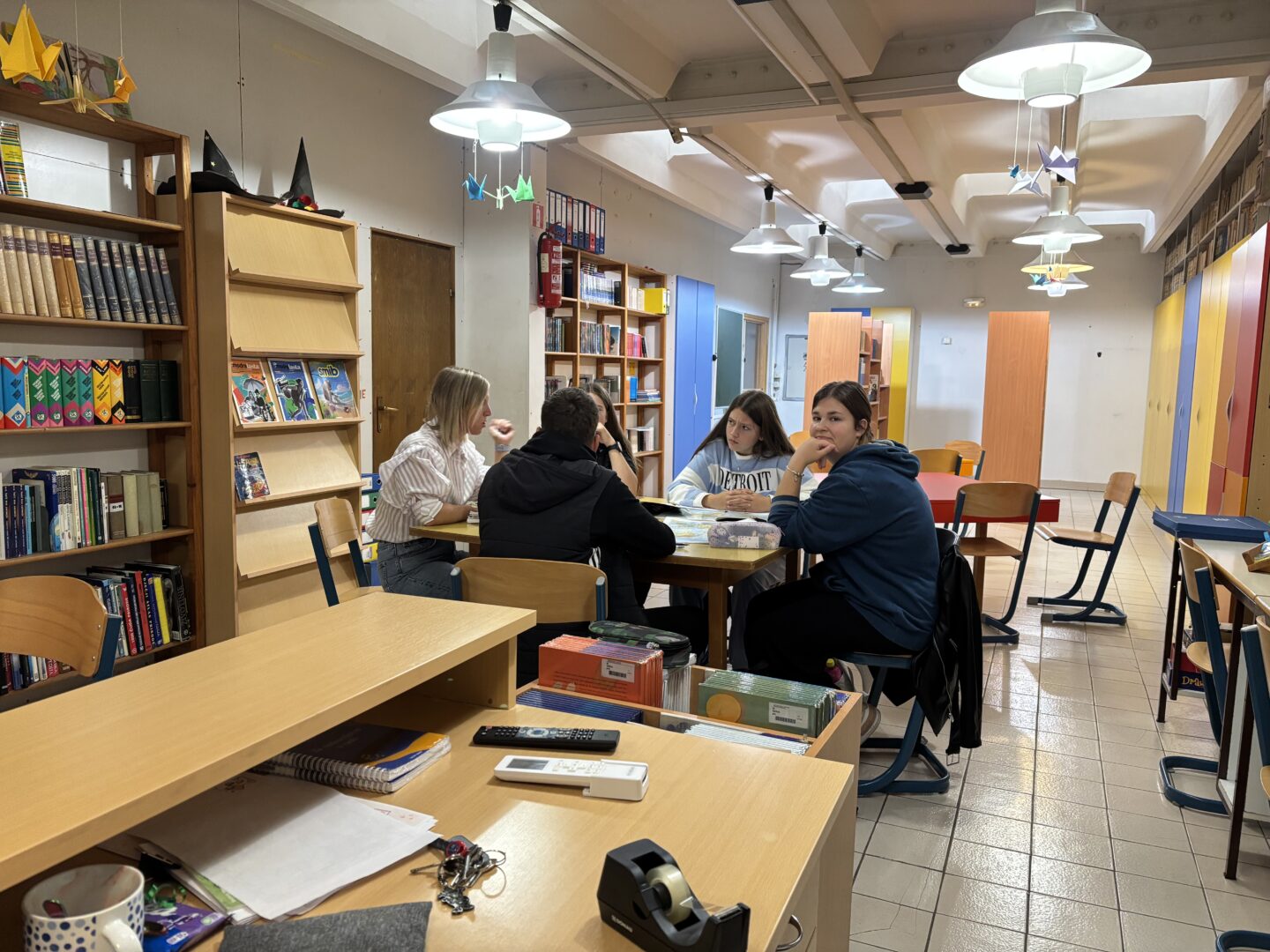 Književni susret za učenike osmih razreda održan je u zanimljivom okruženju brojnih knjiga koje je ova spisateljica posebno osmislila za mlade. Svaki od naslova s kojima smo se susreli odiše mladenačkim temama, intrigantnim zbivanjima i turbulentnim događajima. Zahvaljujemo se Jasminki na susretu, a vas sve pozivamo na dozu novih primamljivih naslova koje od danas možete posuditi i u našoj školskoj knjižnici.
