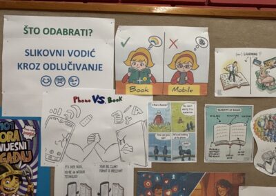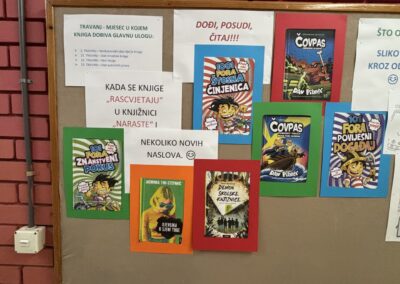 I za kišnih dana mora se iz stana, ali se za vrijeme odmora ne mora izvan škole. Zato imamo knjižnicu u kojoj je uvijek dobro provesti vrijeme…….malo uz ponavljanje pa malo uz “ćakulu” i sve lakše prođe.