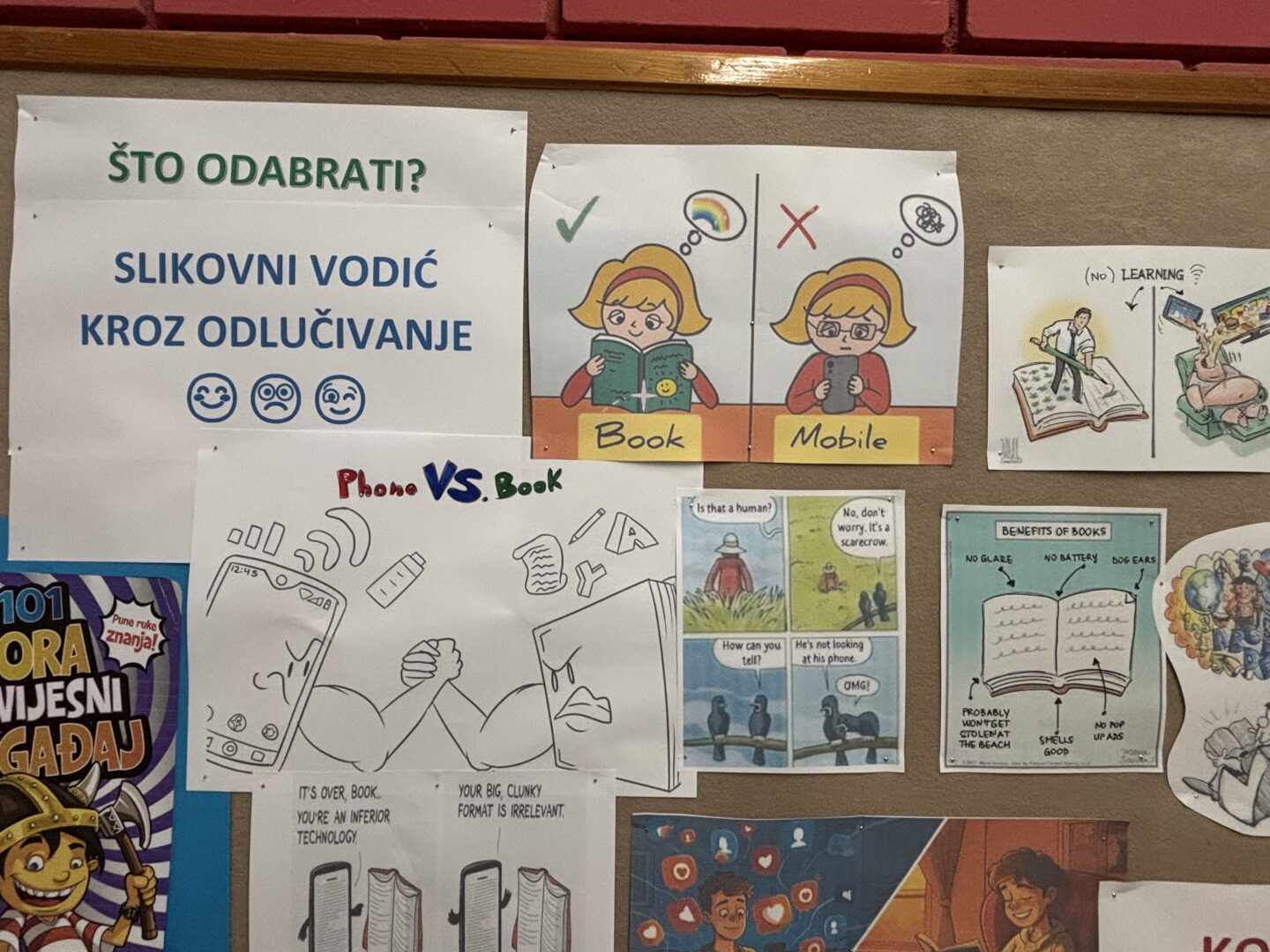 Upute na panou ispred knjižnice, prijava u knjižnici 🙂