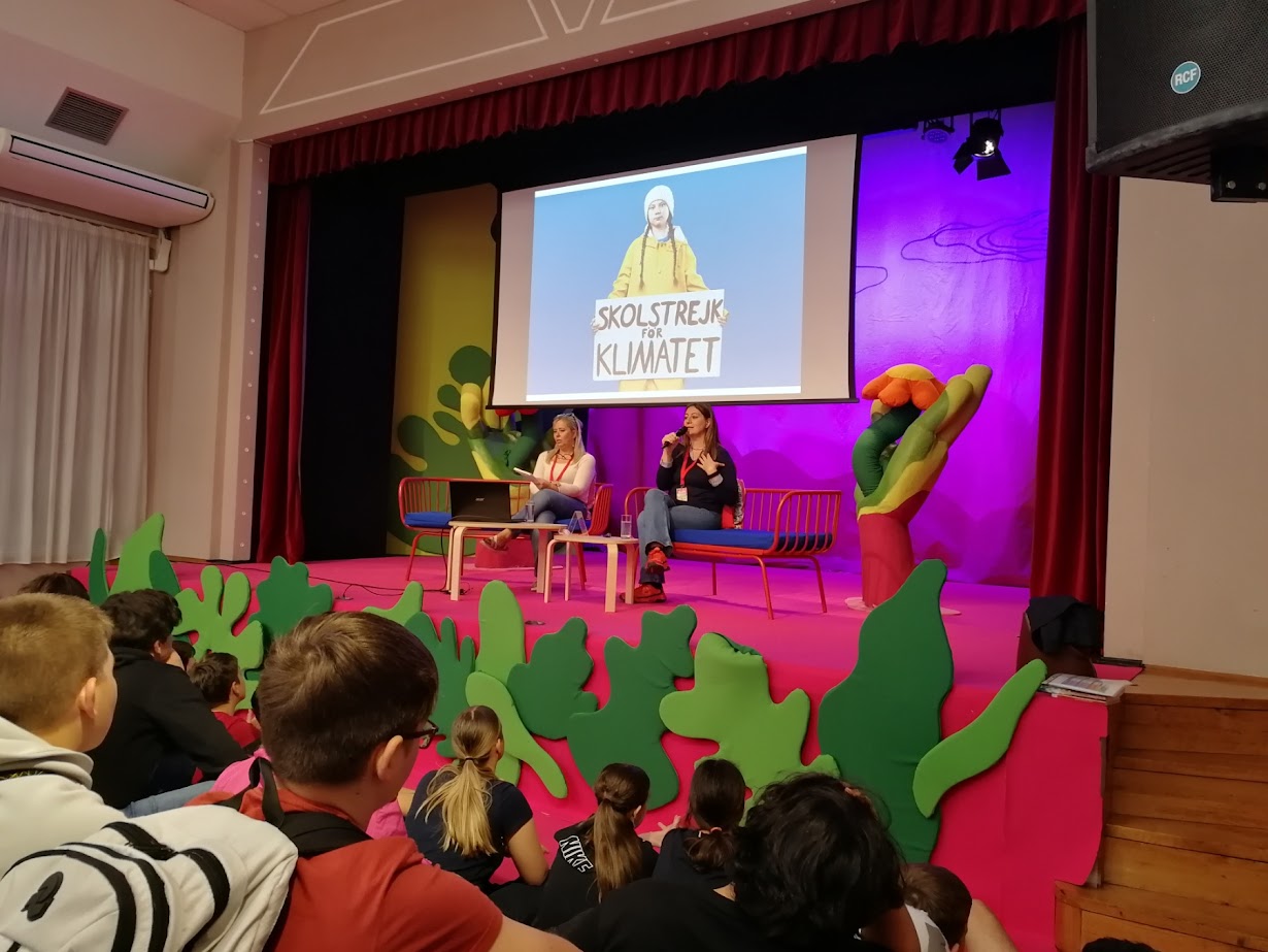 Mercoledì 22 aprile 2026, gli alunni della quinta e sesta classe, accompagnati dalle insegnanti Manuela Verk e Cristina Demarin, hanno partecipato all’incontro con le autrici Carola Benedetto e Luciana Ciliento nell’ambito della manifestazione Monte Librić a Pola. Durante l’incontro è stato presentato il libro “I ragazzi del Fridays for Future”, un testo che racconta l’impegno dei giovani di tutto il mondo nella lotta contro il cambiamento climatico e per la tutela dell’ambiente. L’evento si è rivelato molto coinvolgente e ha stimolato grande interesse e partecipazione da parte degli alunni, permettendo ai ragazzi di avvicinarsi ai contenuti di Educazione civica, come il tema dell’ecologia e della responsabilità ambientale, in modo diretto e consapevole.