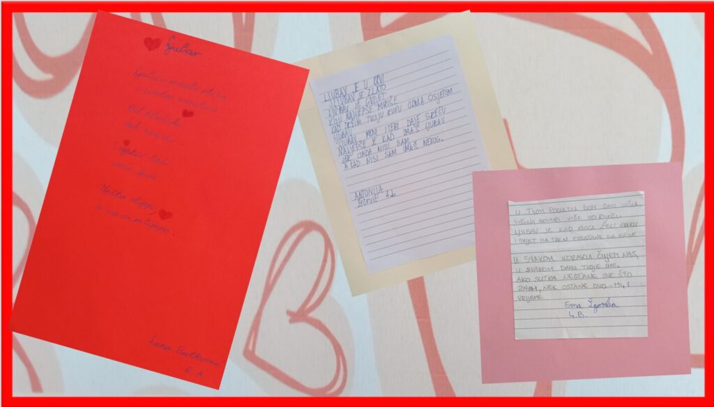 Le alunne della quarta b, Antonija Zečević e Ema Žgomba, e’ aluna della sesta a, Lana Butković, hanno trasformato i loro pensieri sull’amore in opere creative e hanno vinto i premi. Congratulazioni!
